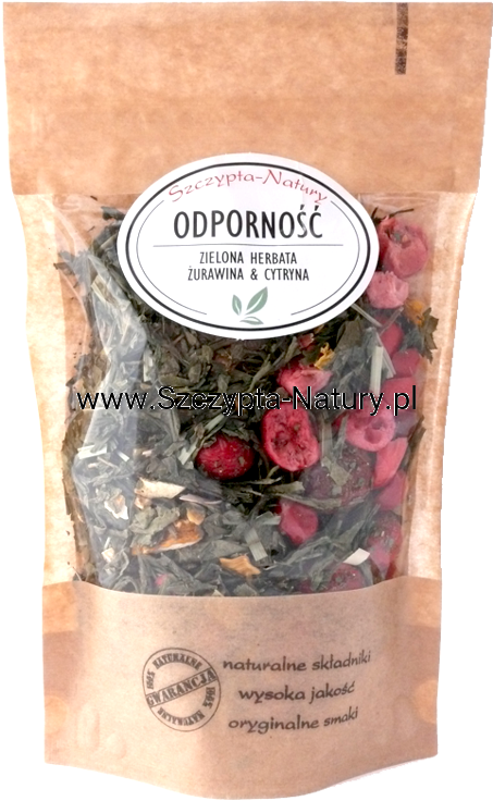 | Skład | Herbata zielona Sencha, Żurawina liofilizowana 8%, Cytryna suszona 8%, Skórka cytryny 4%, Trawa cytrynowa, Płatki słonecznika, Naturalny aromat |